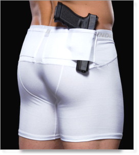 Modeled off our extremely popular Compression T-Shirt, the Undertech Undercover Compression Shorts Holster is truly the next generation of comfortable concealed carry. It’s like not wearing a holster at all! So comfortable, so secure, and yet so concealed. The holsters are made from surgical grade elastic and are sewn into a pair of authentic compression shorts. They hold your gun securely and come with an optional retention strap. And, the shorts can be worn with just about everything you own, gym shorts, sweat pants, jeans, dress pants, suit and tie. Works great with or without a belt.